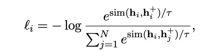 上,就是将一个句子输入 encoder 两次,由于 bert encoder 是一个随机 dropout mask encoder,因此输入一个句子两次会得到两个不同的 embedding,产生的这两个 embedding 作为训练中相互对比的正样本,同一个 batch 中其他句子产生的 embedding 则作为负样本,以此来构造一个对比学习的无监督训练。(所以这里的 batch 数量应当尽可能的大一些,防止 batch 内出现与自身文本是相同语义的样本出现作为负样本,减少在 loss 中这种相同语义样本占的比重)。