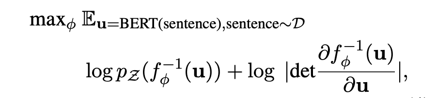 最后,通过无监督的方式 maximize 这个优化目标,得到可逆的映射变换 f,这其实就是在 Bert pre-train model 后接了一个 flow 变换的模型,让其继续 pre-train,学出 flow 变换,从而完成向量空间的 transform。