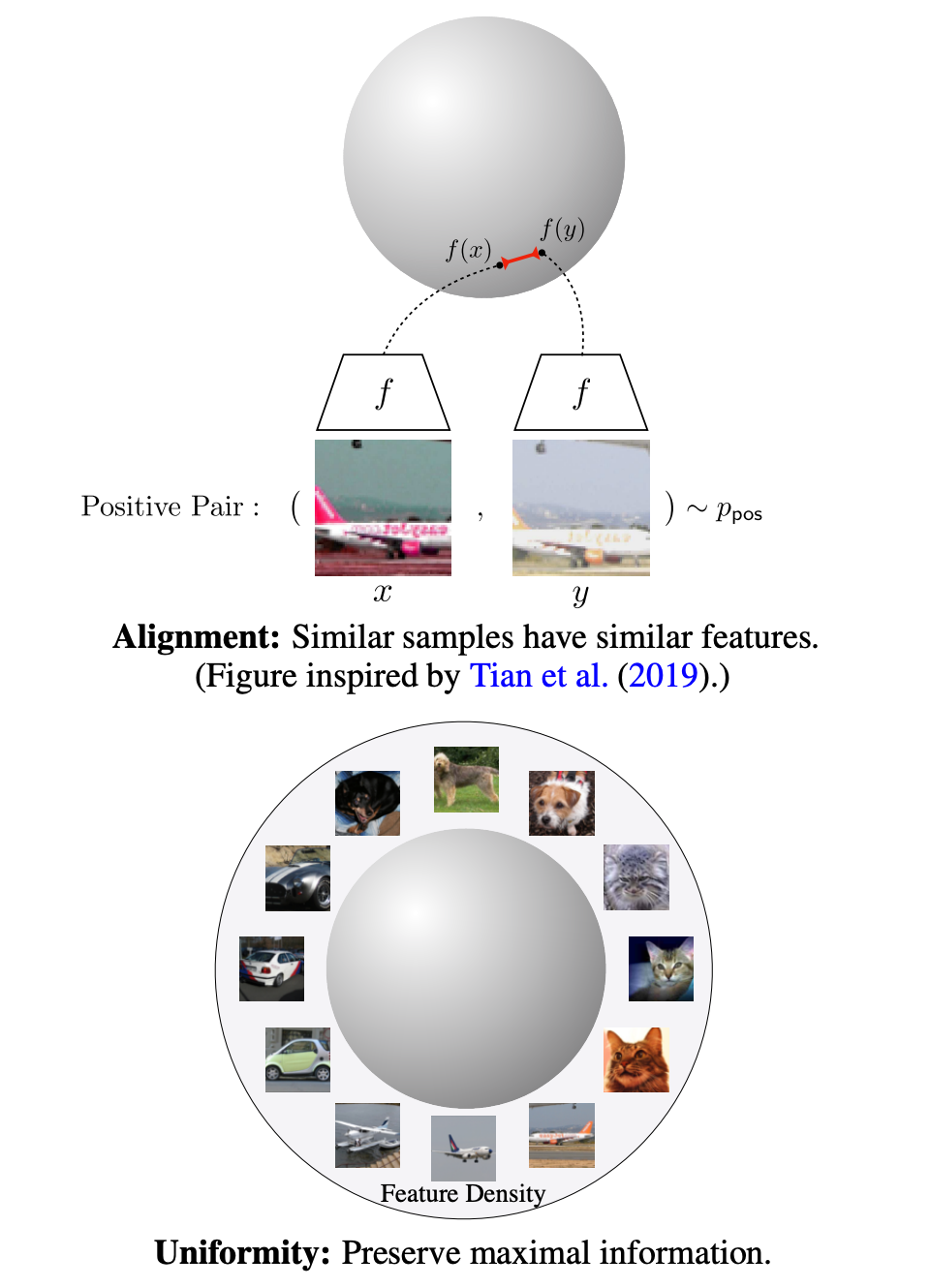 在理解 SimCSE 有效之前,首先得定义一下 alignment 和 uniformity 这两个指标,这两指标 Wang and Isola(2020)提出