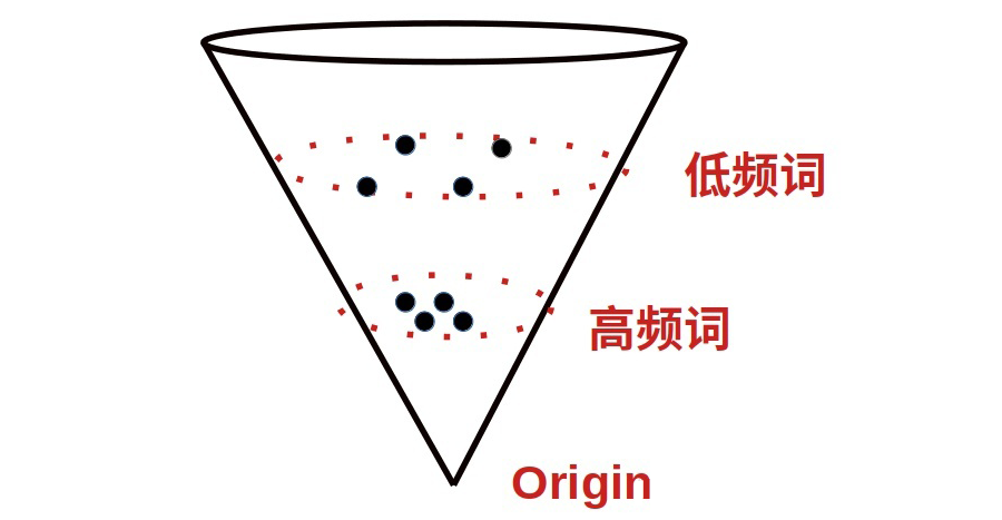 也就是高频词会集中在头部,离原点近,低频词会集中在尾部,离远点远高频词与低频词分布在不同的区域,那高频词与低频词之间的相识度也就没法计算了。这也反映出来的就是明显的低频词没有得到一个很好的训练。同时,高频词频次高,也会主宰句子表达。