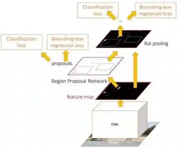 Fast R-CNN测试时每张图像前馈网络只需0.2秒,但瓶颈在于提取候选区域需要2秒。Faster R-CNN不再使用现有的无监督候选区域生成算法,而利用候选区域网络从conv5特征中产生候选区域,并且将候选区域网络集成到整个网络中端到端训练。Faster R-CNN的测试时间是0.2秒,接近实时。后来有研究发现,通过使用更少的候选区域,可以在性能损失不大的条件下进一步提速。