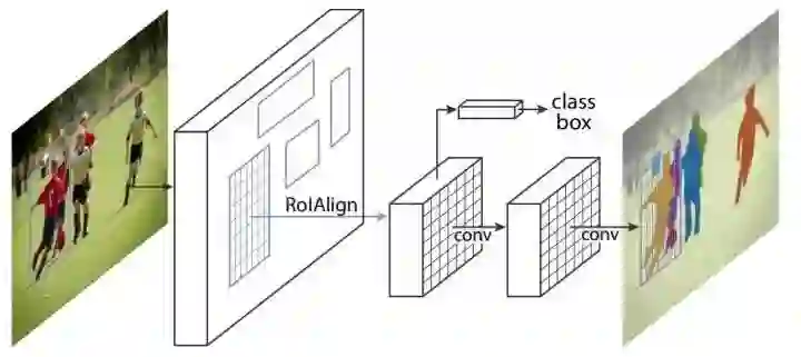 用FPN进行目标检测,并通过添加额外分支进行语义分割(额外分割分支和原检测分支不共享参数),即Master R-CNN有三个输出分支(分类、坐标回归、和分割)。此外,Mask R-CNN的其他改进有:(1). 改进了RoI汇合,通过双线性差值使候选区域和卷积特征的对齐不因量化而损失信息。(2). 在分割时,Mask R-CNN将判断类别和输出模板(mask)这两个任务解耦合,用sigmoid配合对率(logistic)损失函数对每个类别的模板单独处理,取得了比经典分割方法用softmax让所有类别一起竞争更好的效果。