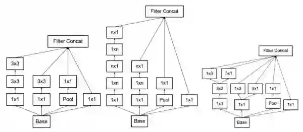 Inception v3/v4 在GoogLeNet的基础上进一步降低参数。其和GoogLeNet有相似的Inception模块,但将7×7和5×5卷积分解成若干等效3×3卷积,并在网络中后部分把3×3卷积分解为1×3和3×1卷积。这使得在相似的网络参数下网络可以部署到42层。此外,Inception v3使用了批量归一层。Inception v3是GoogLeNet计算量的2.5倍,而错误率较后者下降了3%。Inception v4在Inception模块基础上结合了residual模块(见下文),进一步降低了0.4%的错误率。