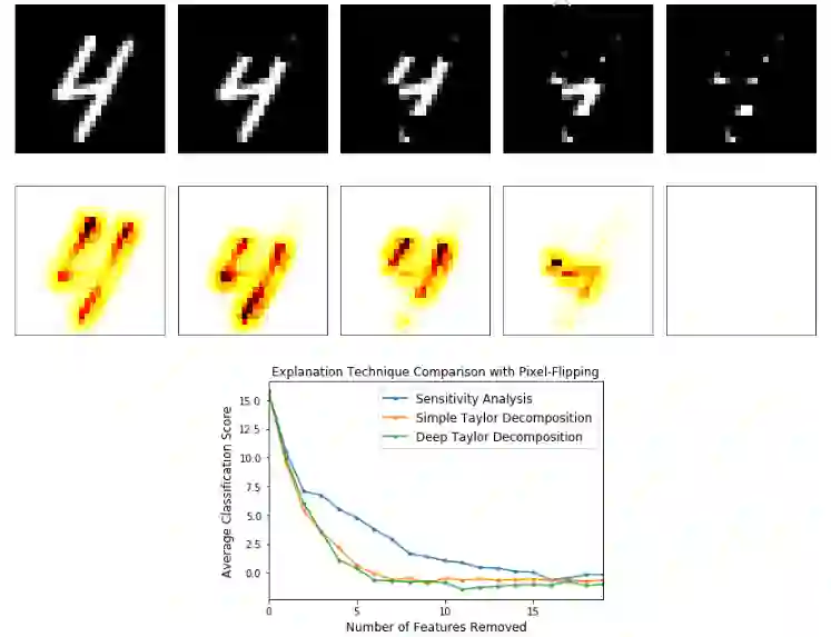 Layer-wise Relevance Propagation 层方向的关联传播,一共有5种可解释方法。Sensitivity Analysis、Simple Taylor Decomposition、Layer-wise Relevance Propagation、Deep Taylor Decomposition、DeepLIFT。它们的处理方法是:先通过敏感性分析引入关联分数的概念,利用简单的Taylor Decomposition探索基本的关联分解,进而建立各种分层的关联传播方法。具体如下:2.1 Sensitivity Analysis相关代码如下:http://nbviewer.jupyter.org/github/1202kbs/Understanding-NN/blob/master/2.1%20Sensitivity%20Analysis.ipynb 2.2 Simple Taylor Decomposition相关代码如下:http://nbviewer.jupyter.org/github/1202kbs/Understanding-NN/blob/master/2.2%20Simple%20Taylor%20Decomposition.ipynb