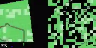 我们将来自 CarRacing 的视觉输入分成由小图块组成的二维网格,并打乱其顺序。在没有任何额外训练的情况下,即使原始训练背景(左)被新图像(右)替换,我们的代理仍然可以运作