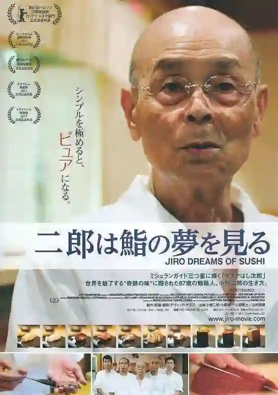 这部纪录片在2011年上映,由美国导演大卫·贾柏执导,讲述了全球最年长米其林三星餐厅数寄屋桥次郎大厨小野二郎的传奇人生和成功背后付出的努力。