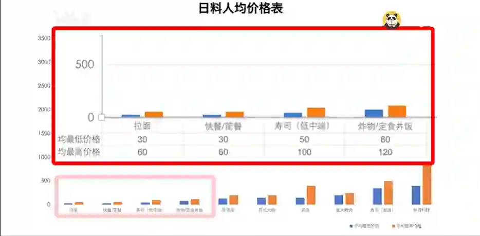 关于日料的分类,如果以价格为纵轴,品类为横轴,我们可以大致得到这么一张图。