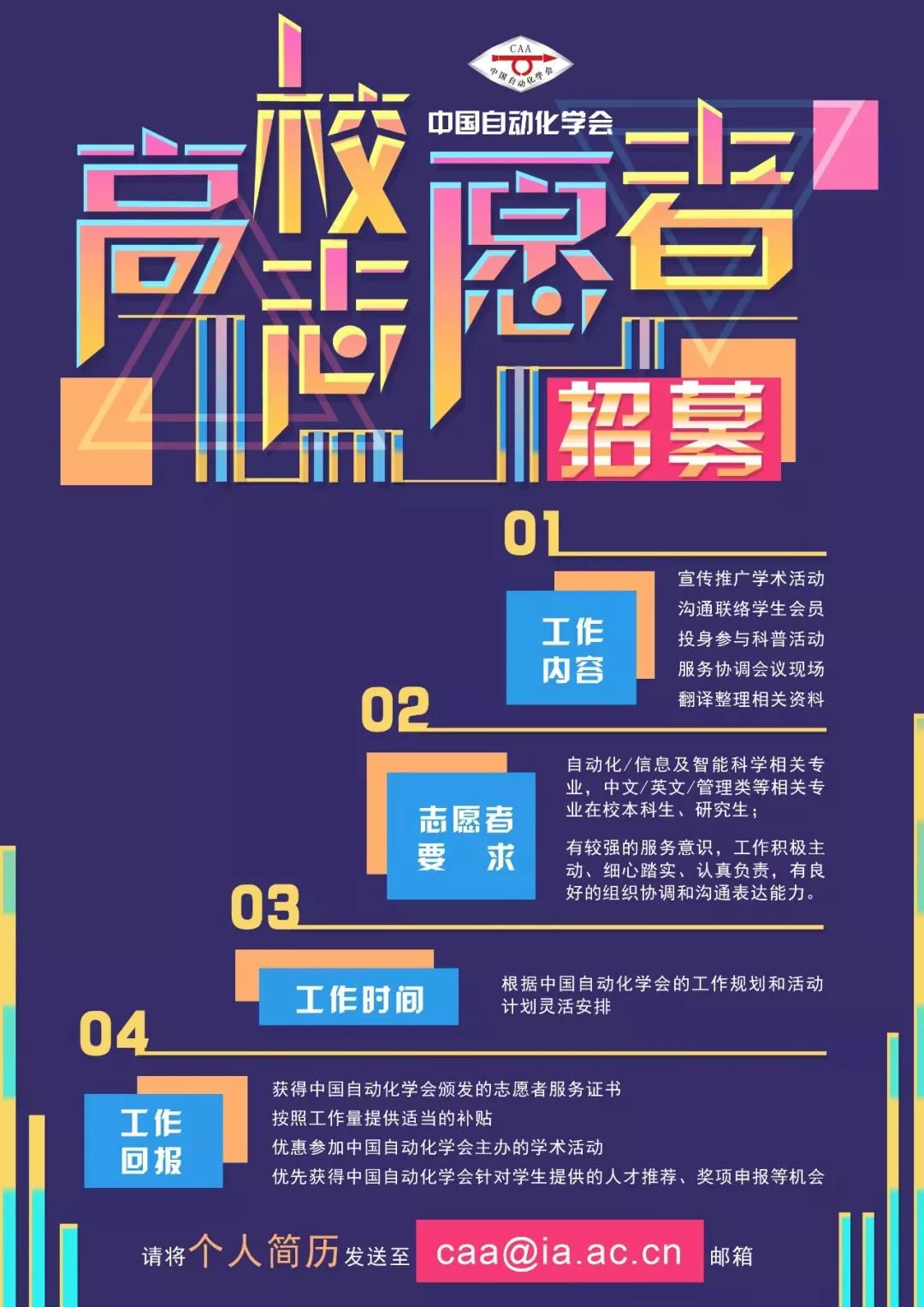 请将个人简历发送至caa@ia.ac.cn邮箱。