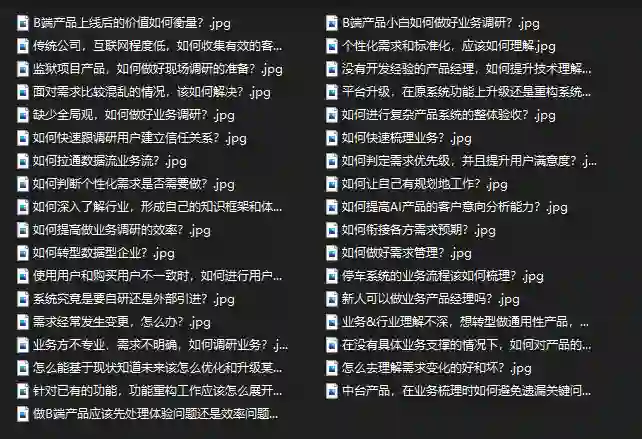 接下来先介绍下第一套方案——30+份B端产品答疑精华资料。