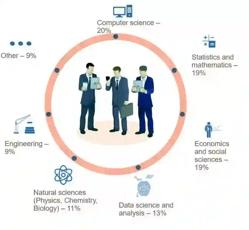 365 Data Science 的研究表明,20% 的数据科学家拥有计算机学位,19% 拥有统计学或数学背景,19% 主攻经济和社会科学专业。只有 13% 拥有存粹的数据科学学位。不过很少有大学提供数据科学本科学位,他们大部分都提供了硕士学位。因为该职业是一个新兴职业,所以毫无疑问,很多人在本科阶段并不会接触到数据科学。