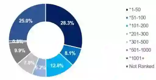 28% 高收入数据科学家来自世界排名前 50 的高校,不过也有 25% 来自不在排名之列的高校。
