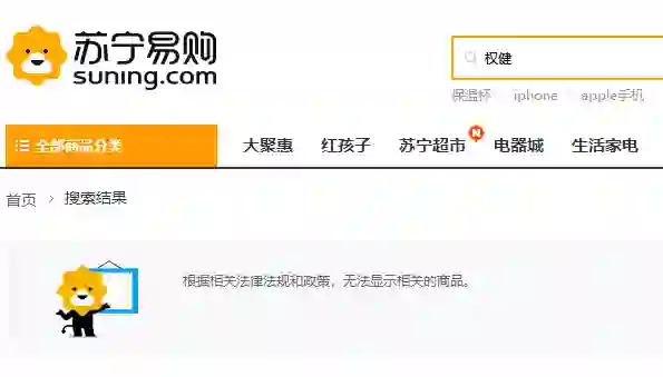 昨晚开始,在唯品会、美团、京东、苏宁等客户端上,输入“权健”均显示无相关内容。唯品会方面表示,从来没卖过权健的商品。苏宁页面上显示:“根据相关法律法规和政策,无法显示相关的商品。京东客服人员称,权健因涉及一篇文章的舆论,已经先行下架了权健的相关商品和店铺。阿里巴巴方面也称,已高度重视,正等待调查结果再采取进一步行动。