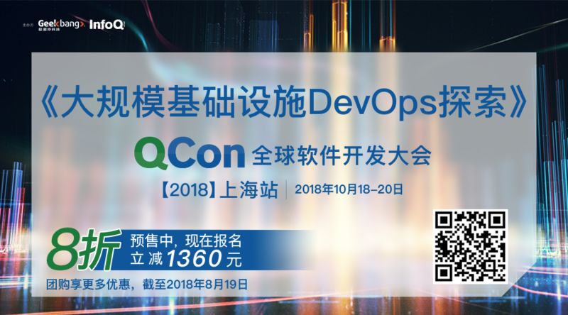 QCon 上海 2018 邀请到一批与你志同道合的同学,基于实际的项目和开发,分享在大规模基础设施 DevOps 领域的新思路,新架构,新技术。大会8 折报名中,立减 1360 元。有任何问题欢迎咨询票务经理 Hanna,电话:010-84782011,微信:qcon-0410。