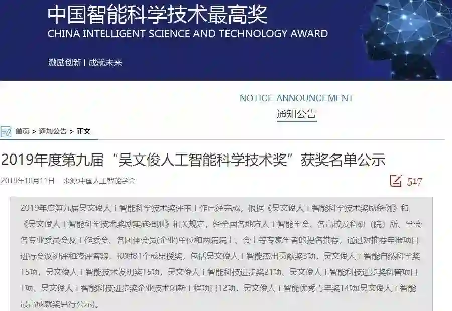 第九届吴文俊人工智能科技进步奖(科普项目)获奖名单