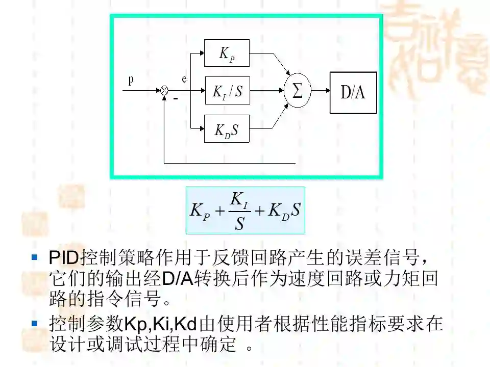 PID参数的模糊自整定是找出PID三个参数Kp、Ki、Kd与e和ec之间的模糊关系,在运行中通过不断的监测e和ec,根据模糊控制原理对三个参数进行在线的整定。