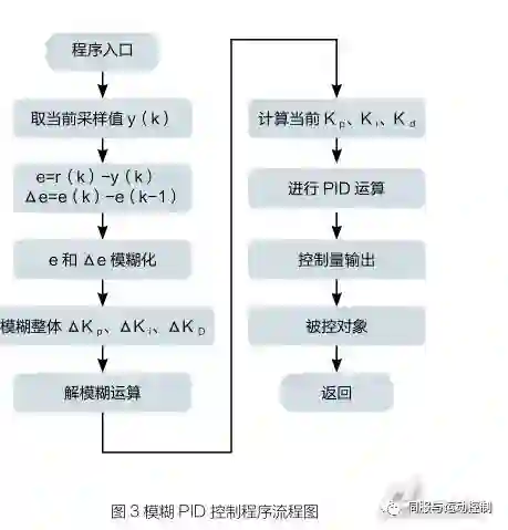 常用的解模糊算法有最大隶属度法、加权平均法等,根据实际情况,采用加权平均法进行解模糊。模糊PID控制程序流程如图3所示。