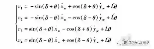 这样,就可以将机器人整体期望速度,解算为到4个轮子分别的速度,把数据传送到控制器中,就可完成对机器人的控制。