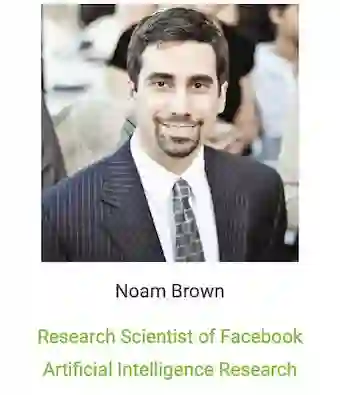 个人简介:Noam Brown,Facebook 人工智能实验室的研究科学家,他致力于结合计算博弈论和机器学习来开发能够在不完美信息多智能体环境中进行策略推理的 AI 系统,其研究成果应用到了首个分别在在双人无限扑克和多人无限扑克中战胜人类顶级玩家的 Libratus 和 Pluribus。其中,Libratus 被《科学》杂志列入 12 项年度突破性科学成果之一,Pluribus 则登上《科学》杂志的封面。