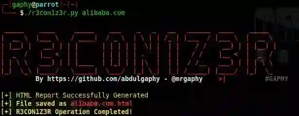 $ git clone https://github.com/abdulgaphy/r3con1z3r.git$ cd r3con1z3r$ pip install -r requirements.txt