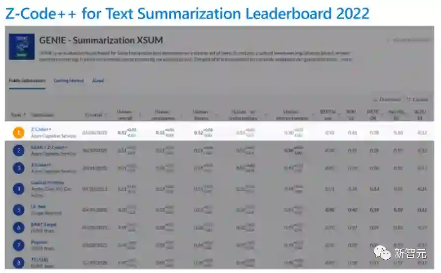 鉴于Z-Code不俗的表现,开发团队又进一步将Z-Code升级拓展为Z-Code++,使其可以完成文本摘要任务,并在GENIE benchmark上取得了第一名的好成绩。