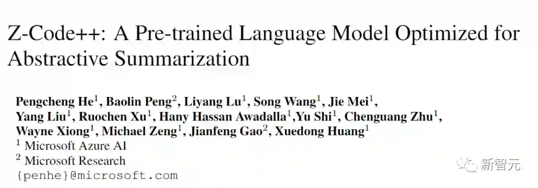 最近,微软的黄学东带队,和第一作者贺鹏程等人共同发表了一项重大的研究成果——全新预训练模型Z-Code++。之后,团队很快也会推出以此为基础的人工智能认知服务抽象式文本摘要API。