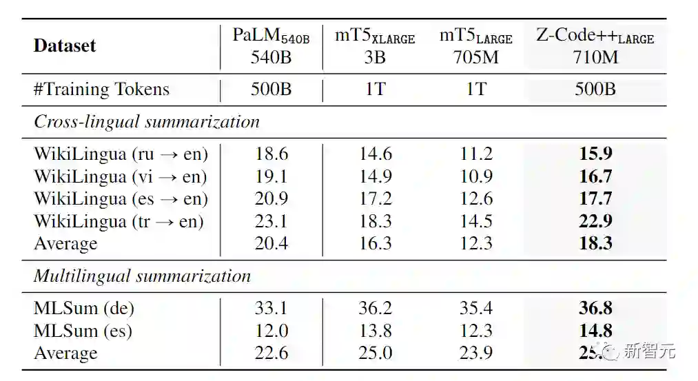 Z-Code++仅针对抽象式文本摘要任务进行优化,在5种语言的13个文本摘要任务中,有9个达到新sota性能,成功超越一众大模型,参数量仅为PaLM的600分之一,GPT-3的200分之一,性价比爆棚!
