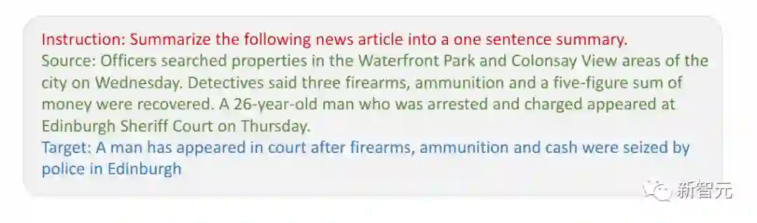研究人员还为每个训练对添加一个摘要任务的自然语言指令。
