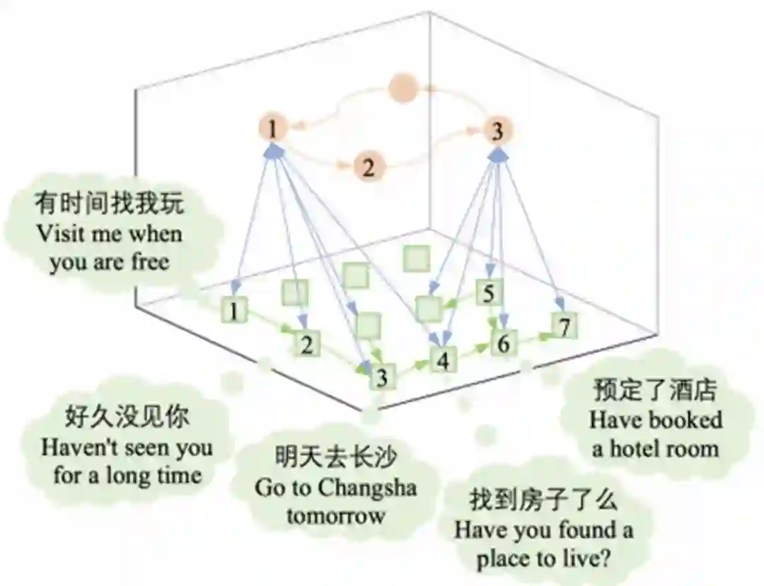 在本文中,对话结构图是一个两层的有向图,捕捉了对话状态以及状态之间的转移关系。