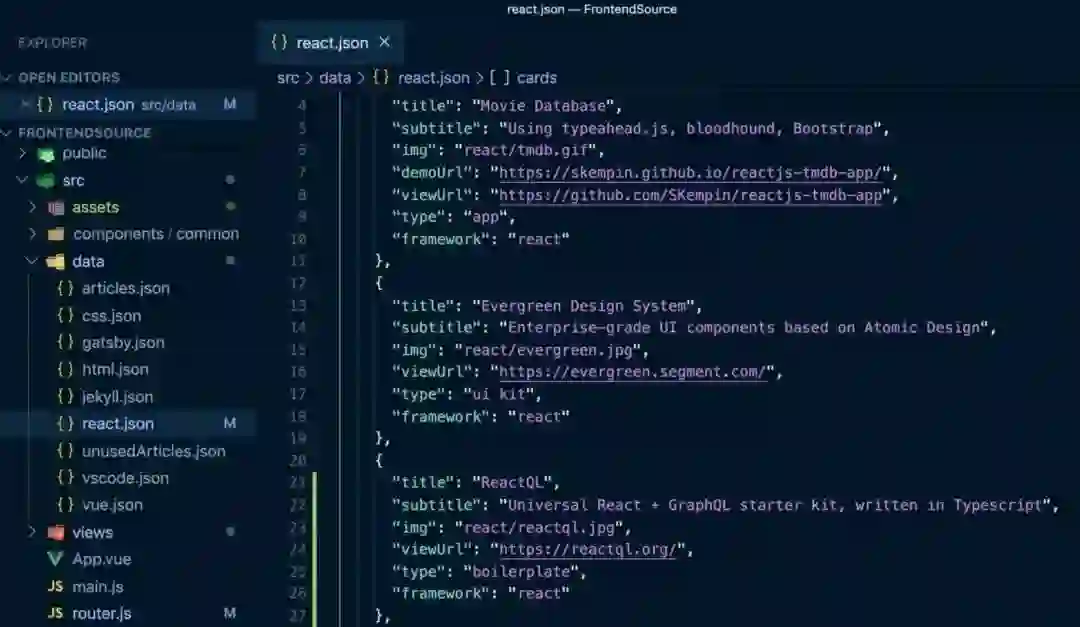 我按框架分离了.json 数据文件,这样以后添加起来会更容易。我还决定将它们保留在项目文件中,而不是使用外部数据库。这样,如果我改变主意要换一个数据库来用,也无需更改一堆代码来适配新的数据库(如你在第 5 步中将看到的,这是一个明智决定)。