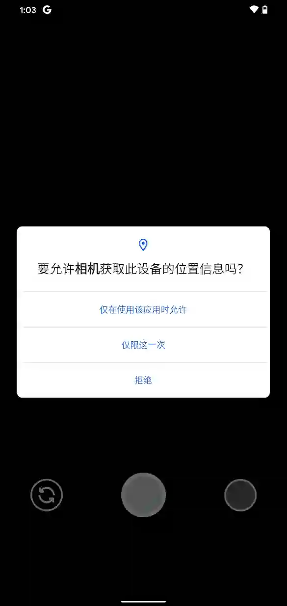Google 并没有止步,Android 11 在上面这些改进的基础之上加入了「仅限这一次」的授权方式。这种方式适用于位置、麦克风和相机这三类权限,将授权粒度从应用内授权进一步扩展到了单次使用授权。