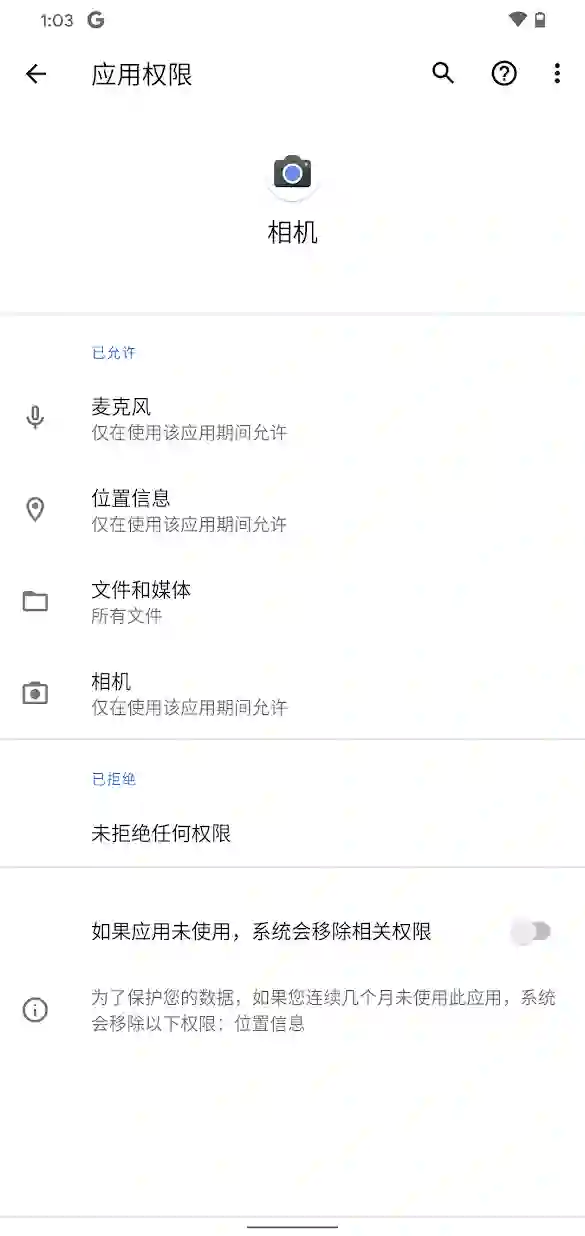 此外正如我们此前介绍 DP3 时所提到的那样,除了单次授权机制,任意应用的权限管理页面底部还提供了一个「如果应用未使用则移除相关权限」的选项,勾选这个功能后,目标应用所获取到的权限许可会在闲置数月不用后被自动撤销,避免用户早已忘记,但应用依然在后台借助权限许可获取隐私信息的情况。