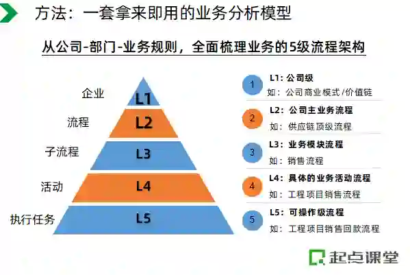 这部分内容,老师将会教大家一套名企都在用的业务分析模型:从“公司--部门--业务规则”自上而下全面梳理业务。
