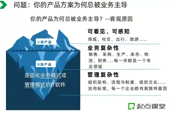 这部分内容,老师会讲解B端产品经理普遍面临的困境——产品总被业务主导,并为大家理清问题背后的具体原因。