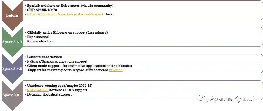 Spark on Kubernetes 自 2018 年初随 2.3.0 版本发布以来,不知不觉已经有四个年头了,而到现在的 3.2 版本,也已经历经 5 个大版本了。在社区和用户的不断打磨下已经成为了非常成熟的特性了。
