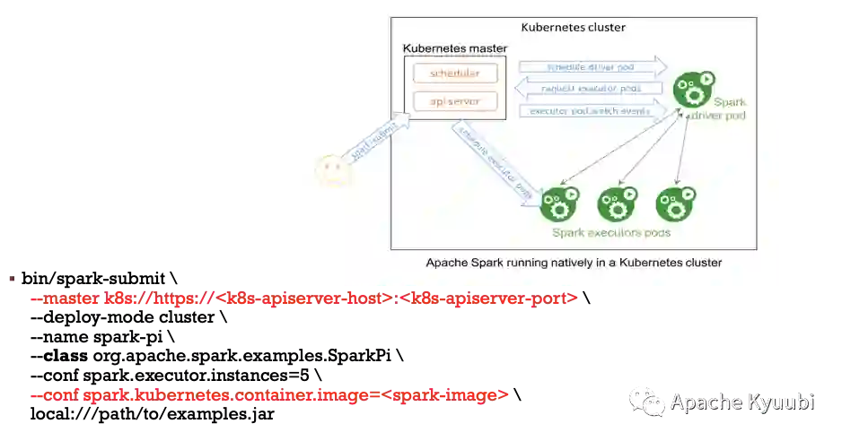另外,除了这种方式, Kubernetes 在 API 上更加丰富。我们可以通过 Spark Operator[6] 的方式, 如 kubectl apply -f