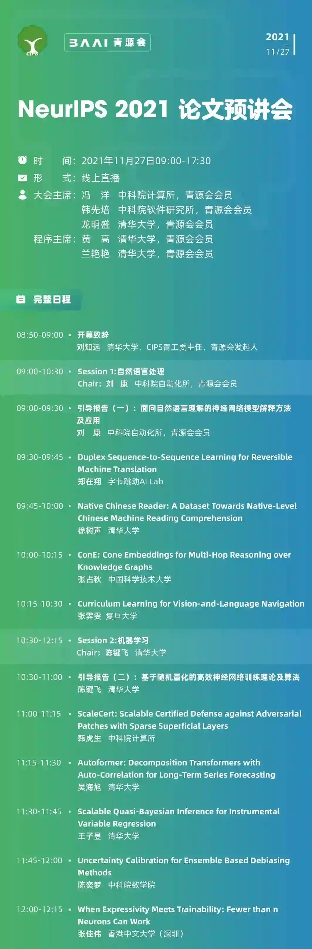 会议时间:2021年11月27日(周六)08:50-17:30
