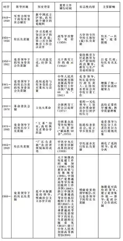 特别是在《中共中央关于教育体制改革的决定》(1985年)颁行后,一些人想借“学术自由”之名,检讨政府对大学束缚过多的现实,简单移植在经济领域方兴未艾的“厂长负责制”形式到高等教育领域,忽视教育领域特殊性,在原国家教委颁行《关于高等学校逐步实行校长负责制意见》(1988年)之后1年内,100多所大学相继实行“校长负责制”,党的领导一度被弱化,党委书记的作用被忽略。很快,这项试点戛然而止,后来通过《高等教育法》将“党的领导”作为一项法律制度确定下来。