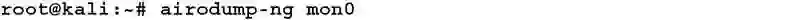 1、在监视模式中启用wlan0端口,这将创建一个用于监视的mon0接口,使用以下命令: