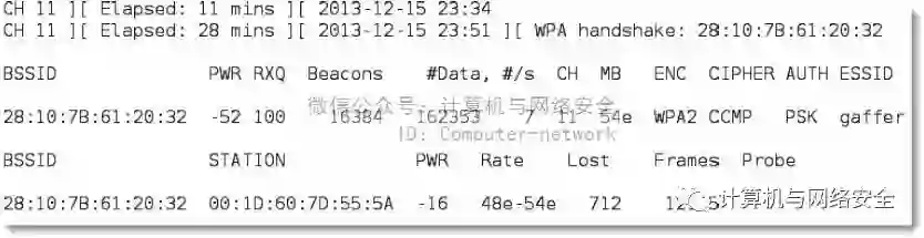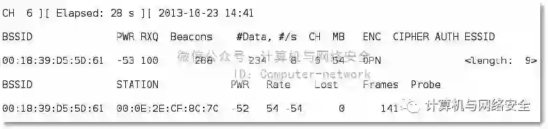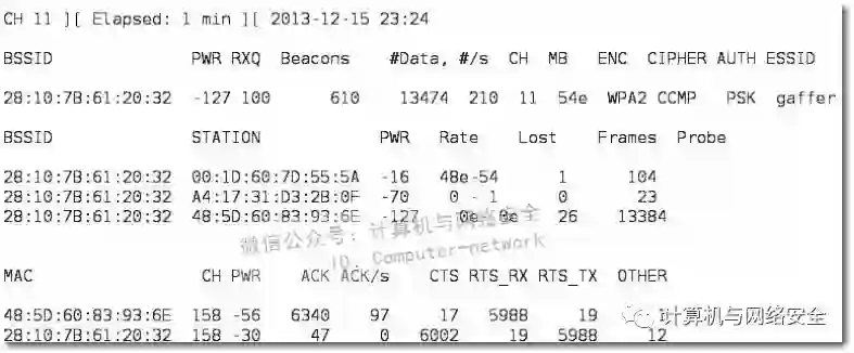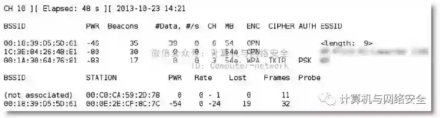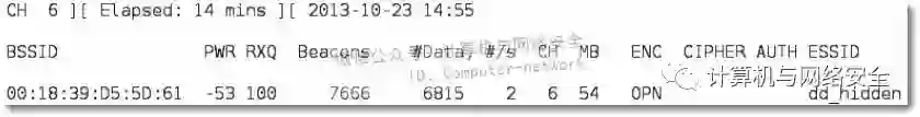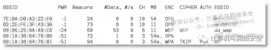 airodump命令通过可用的无线信道循环执行,并确定了以下几点: