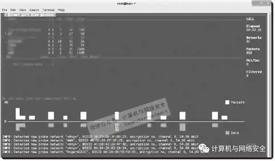 在Kali中测试这种攻击表明,这种攻击速度缓慢且容易失败;然而,它可以用作背景攻击,或者补充其他路由攻击来破解WPA网络。
