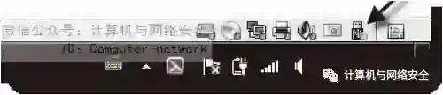 如果你使用连接USB的无线网卡连接到Kali虚拟机,确保USB连接已经断开主机操作系统,并通过单击USB连接图标连接到VM虚拟机,如下图所示,箭头所指即USB连接图标。