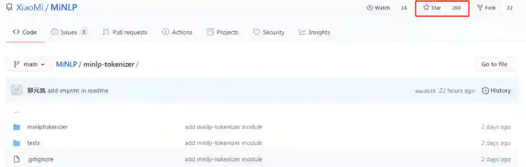 项目地址:https://github.com/XiaoMi/MiNLP/tree/main/minlp-tokenizer