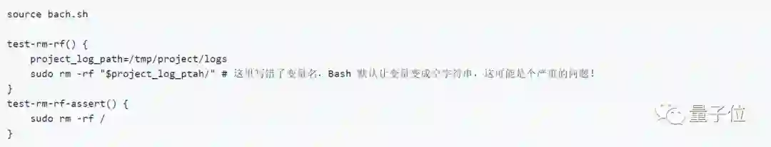 这就导致Bash在调试时,某些命令具有危险性,例如rm -rf是删除文件夹下所有文件,一旦执行错误,可能会产生爆炸的效果。