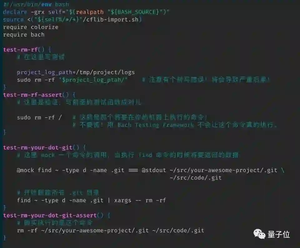 也就是说,Bach可以用于测试Bash中一些非常危险的命令,且不用担心会产生任何后果。
