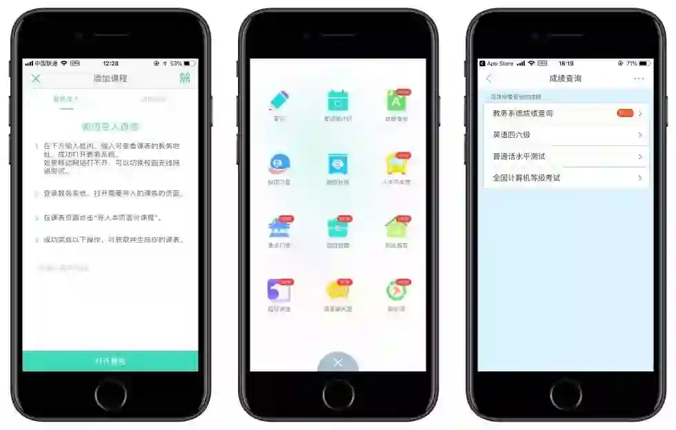 其实,课程表应用不光关心你的课程安排为你设置课程提醒,还很在意你的学习考试的流程。所以,诸如考试倒计时、成绩查询、笔记等功能,超级课程表(和其他的课程表应用)也都有集合在课程表应用之内。