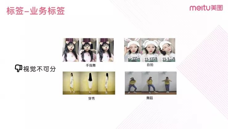 美拍有上百类的标签体系用于内容运营,涵盖了美拍短视频常见的内容和类别。但这些现业务标签并不适合直接拿来做算法的训练,主要存在以下问题: