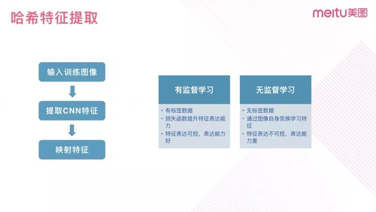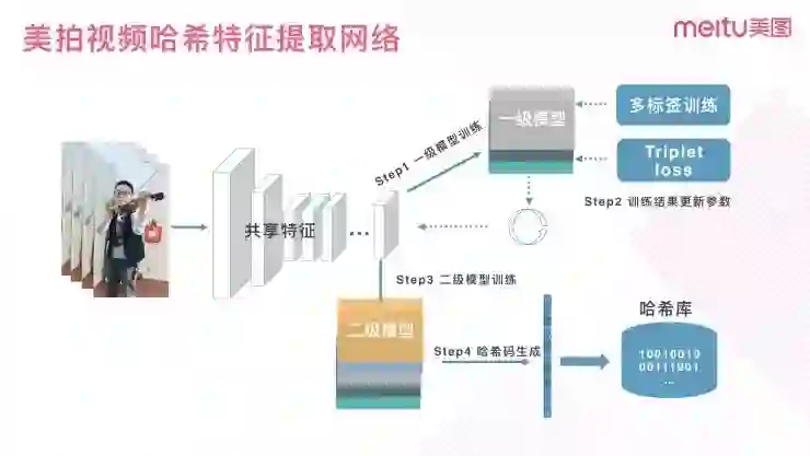用于提取哈希特征的网络模型的训练可以分为有监督和无监督两种形式。有监督学习基于有标签的数据进行训练,加以特定的损失函数提升特征的表达能力。它的特点是特征表达是可控的,可以通过标签来告诉这个网络重点学习哪些特征;无监督学习基于无标签数据进行训练,通常通过图像自身变换学习特征表达能力,所以特点就是特征表达不好控制,较难干预网络应该学习哪种特征。无监督学习目前还处于学术研究阶段,业务难以直接应用。因此,我们当前采用的方案也是基于有监督的视频哈希算法。