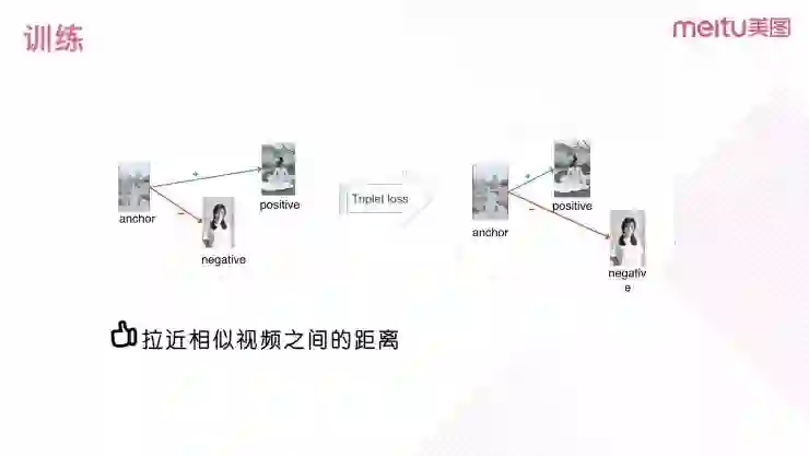 在网络训练的阶段采取 Triplet loss 的方式增强特征的表达能力。Triplet loss 会拉近相似视频之间特征的距离,拉远不相似视频间的距离。
