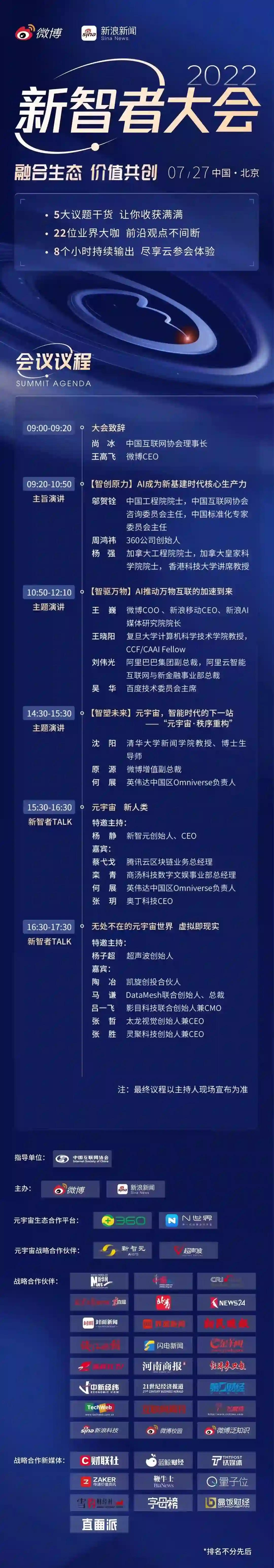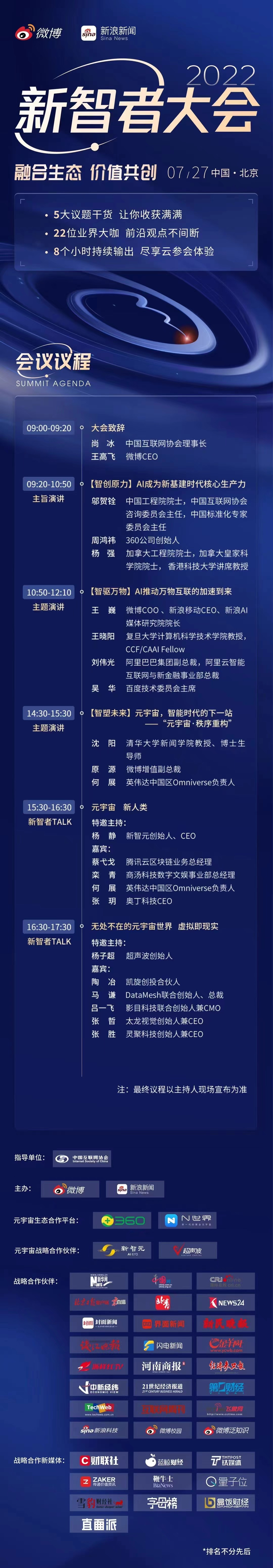 7月27日,由微博、新浪新闻主办的人工智能领域峰会——2022新智者大会将在线上拉开帷幕。
