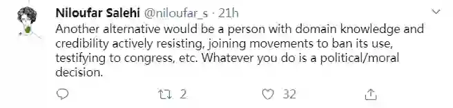 相反,你应该利用自己在该领域的影响力来提高人们的警惕,将研究成果用在正确的地方。